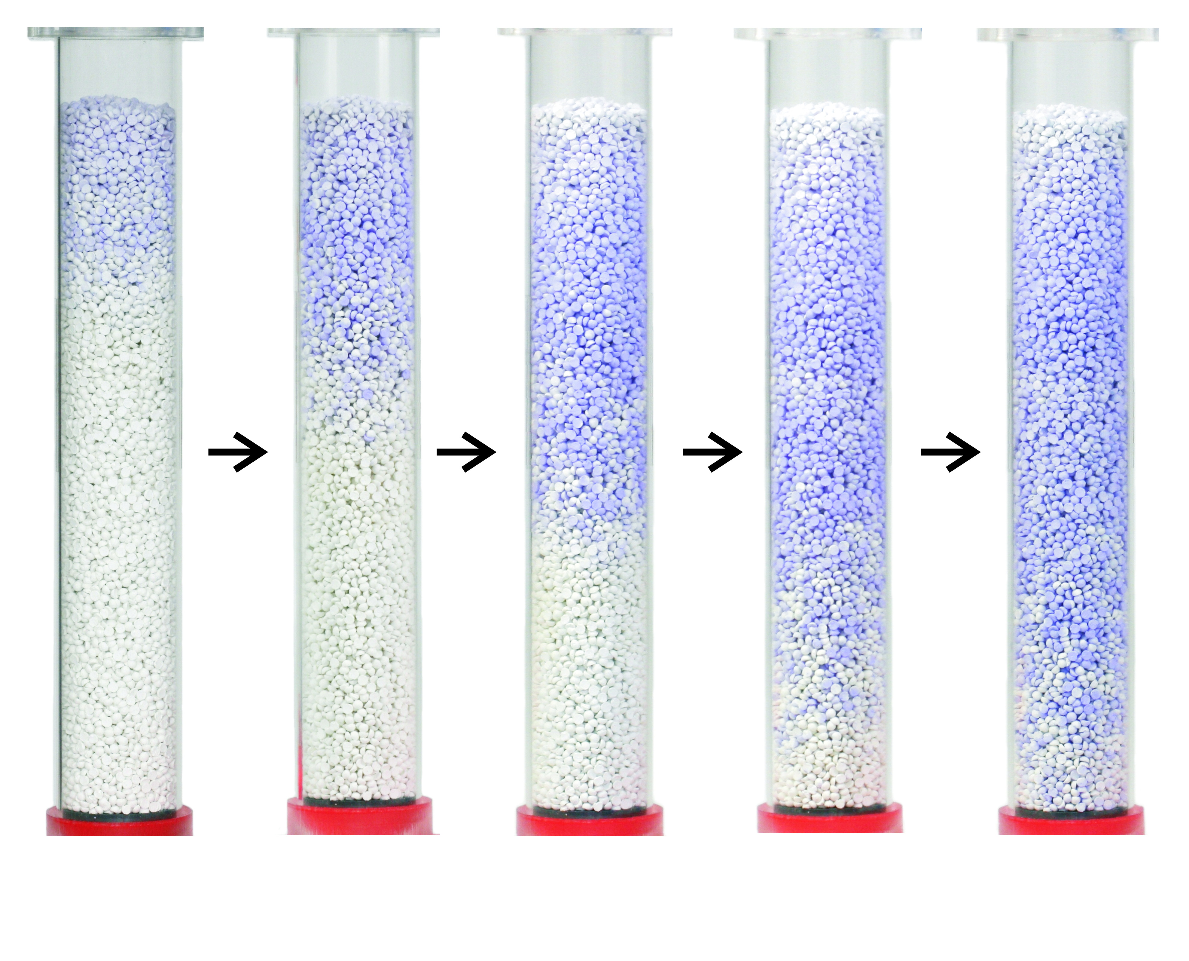 Ist die Kapazität des Adsorbers erschöpft verfärbt sich das Granulat violett. Das Granulat muss dann ausgetauscht werden.