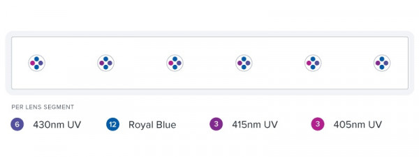 Die BLADE GLOW ist kompromisslos in ihrer Mission, Korallen zum Leuchten zu bringen. Sie schafft spektrale Spitzen im unteren Bereich des blauen Spektrums und im oberen Bereich des UV-Spektrums, die die Fluoreszenzspitzen der Korallen stimulieren.