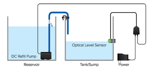 Einzigartiges Automatisiertes-Top-Off-System, welches das Nachfüllen von verdunstetem Wasser überwacht und automatisiert.