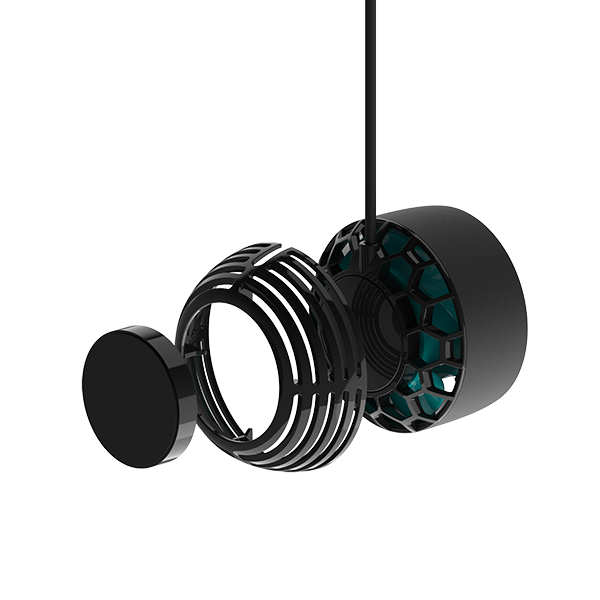 Herkömmliche Propeller- und Impellerdesigns können einen harten Wasserstrahl erzeugen, der es schwierig macht, die Pumpe zu positionieren. Mit ihrem inversen Motordesign erzeugt die NERO einen einstellbaren breiten Strom, während das Profil der Pumpe kompakt bleibt. Dadurch werden große Wasservolumina bewegt, Detritus in die Aquarienfilterung transportiert und tote Strömungsbereiche vermieden, ohne die Korallen zu zerstören.