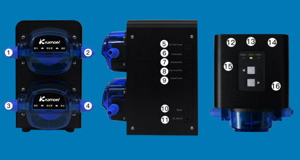 Die Pumpe verwendet zwei hochwertige Schrittmotoren mit Präzisionspumpenköpfen, die für eine genaue Entnahme und Auffüllung des Wassers während eines Wasserwechsels sorgen. Jeder Pumpenkopf ist mit Pharmed BPT-Schläuchen für eine lange Lebensdauer ausgestattet.