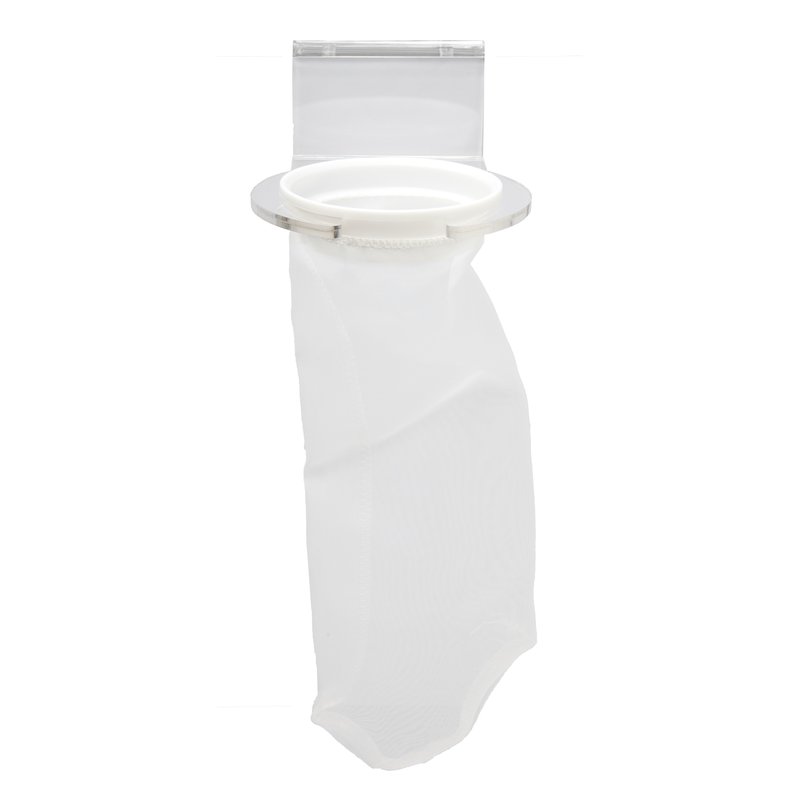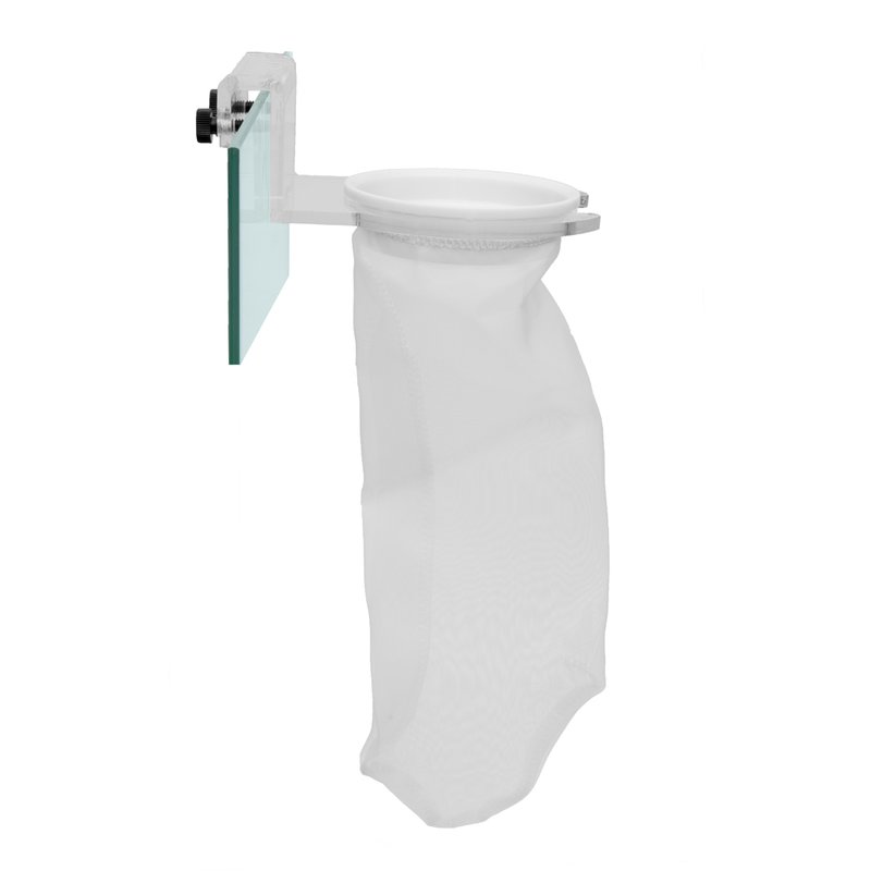 Vorfilter für alle Technikbecken. - Beckenhalterung für Glasstärken bis 16mm - Filterbeutel leicht auszubauen und leicht zu reinigen - 1 Filterbeutel im Lieferumfang enthalten. - Für Süßwasser und Meerwasser geeignet . Maße: Halterung: ca. 180 x 130 x 60 mm (LxBxH) Filterbeutelgrösse: ca 300mm (D=105mm) 200 micron
