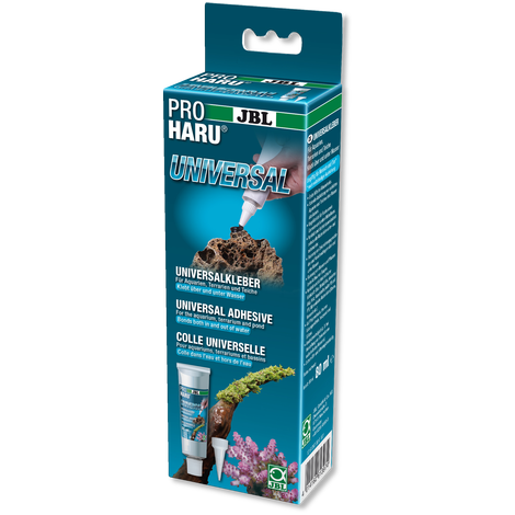 Aquarien-, Terrarien- und Teichfreunde benötigen für die verschiedensten Anwendungen Kleber, der vor allem ungiftig für Tiere und Pflanzen ist. Dafür wurde JBL ProHaru universal und rapid entwickelt. Wer Dekorationsmaterialien miteinander verkleben möchte, muss darauf achten, dass er vorhandene Biofilme auf den Materialien so gut wie möglich entfernt, da Biofilme (rutschige Oberfläche durch Bakterien) eine dauerhafte Verklebung verhindern. Trockene, vorher unbenutze Materialien weisen kein problematischen Biofilme auf