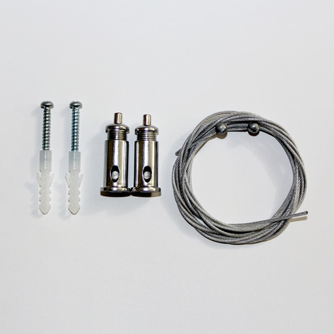 - Lieferumfang: 2 Dübel & 2 Schrauben mit 2 Spezialaufnahmen (für die Decke), 2x 150 cm Edelstahlseil